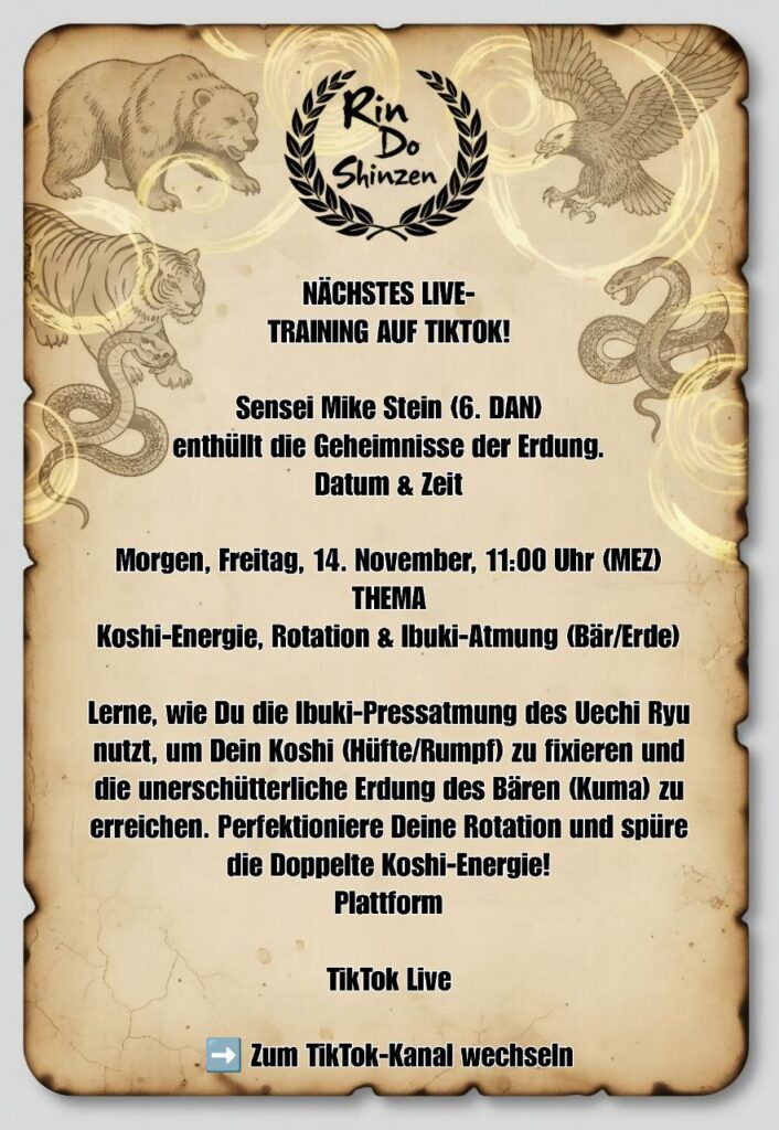 Sensei Mike Stein teilt mit RIN DŌ SHINZEN nicht nur ein Trainingsprogramm, sondern den tiefgründigen Weg eines Lebens im Dō – eine Methode, die beweist, dass wahre Stärke immer aus dem Fundament und der Wahrheit und Güte (Shinzen) kommt.